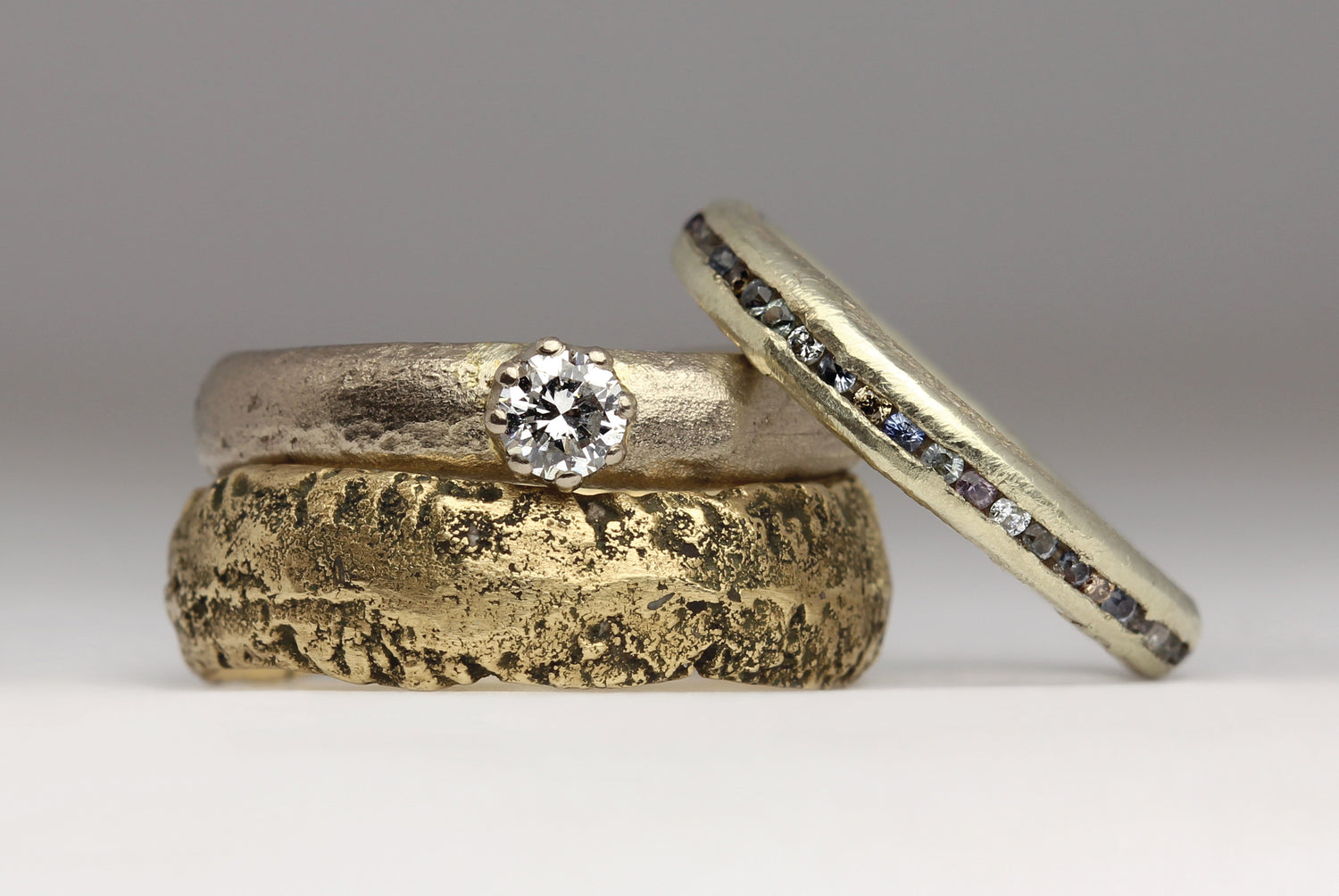 We have a wonderful variety of handcrafted engagement rings, featuring traditional diamonds or coloured gemstones. Come & see the array of wedding rings we have in stock. Bespoke designs also available.