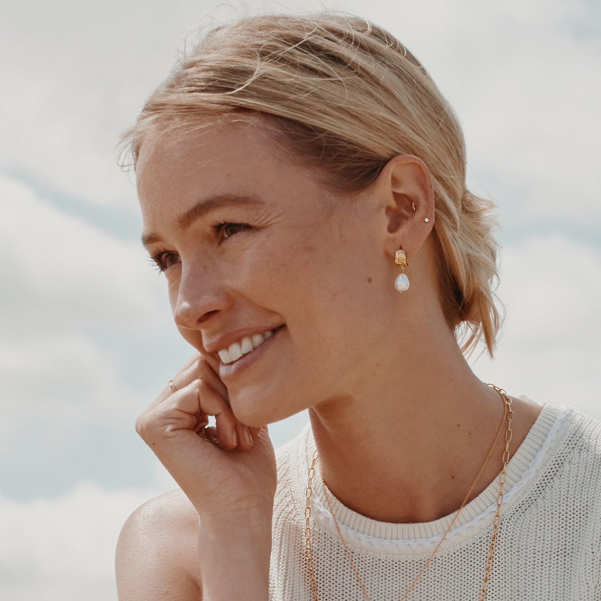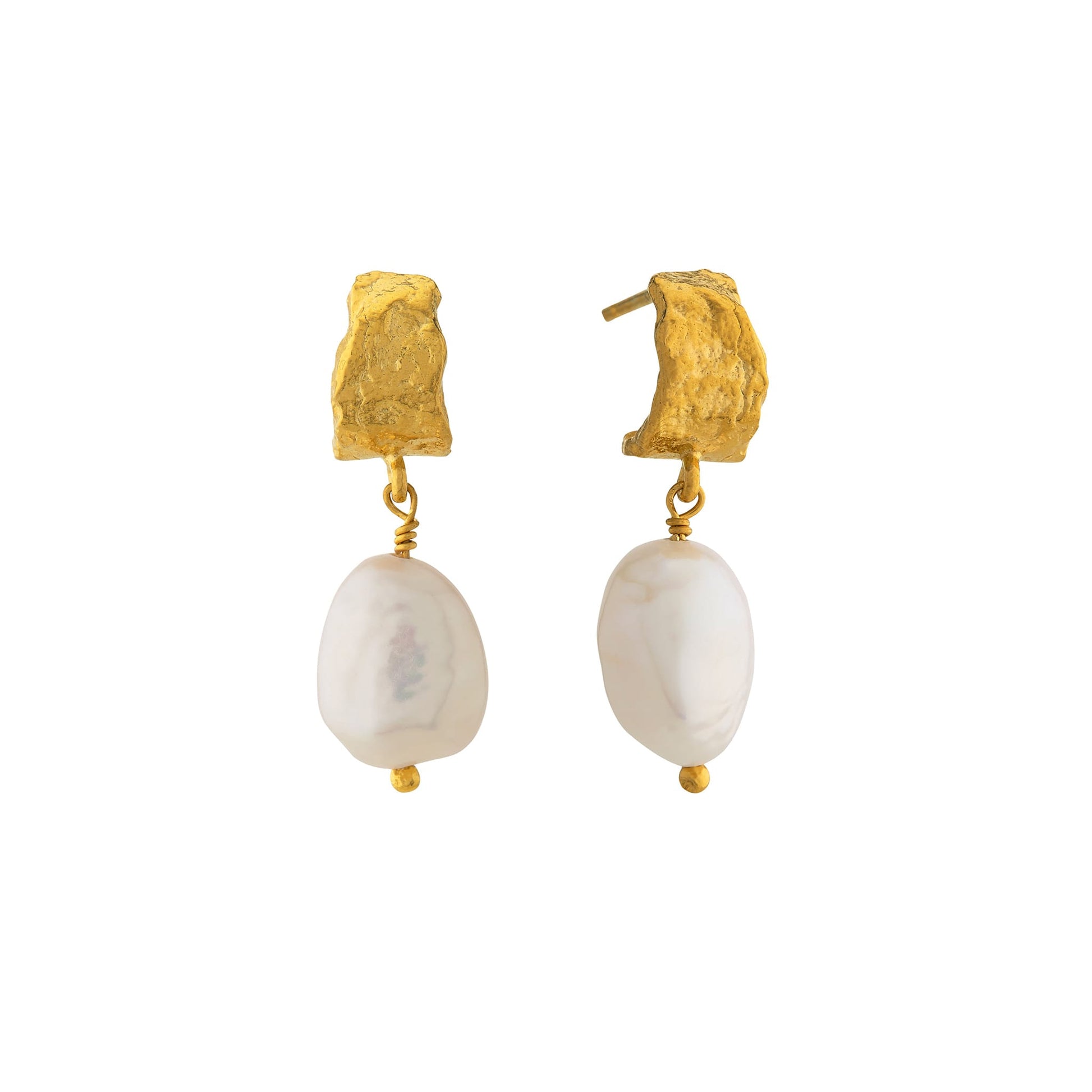 Bark huggie hoops with baroque pearls by Alex Monroe