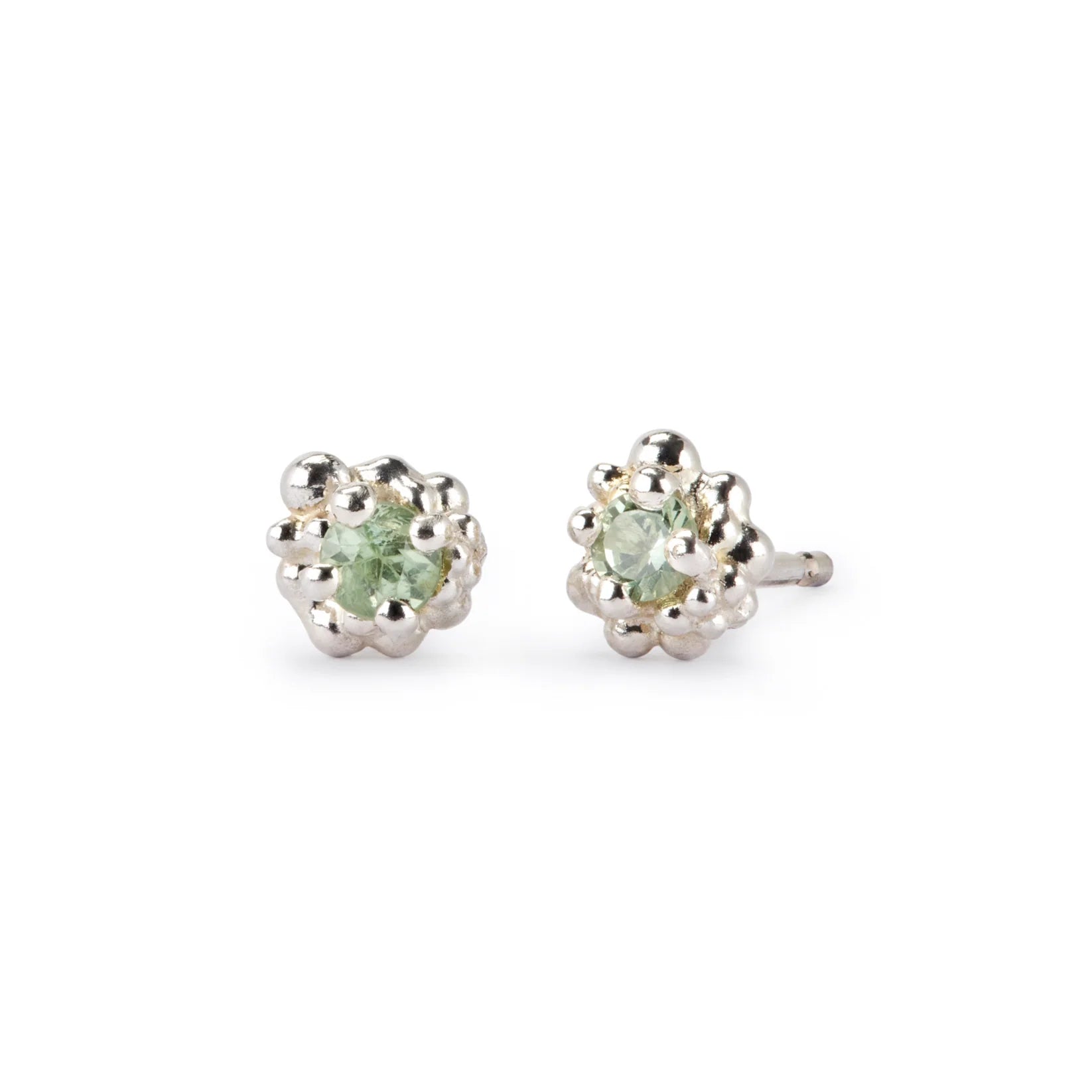 Silver and pale green sapphire cluster earrings by Hannah Bedford