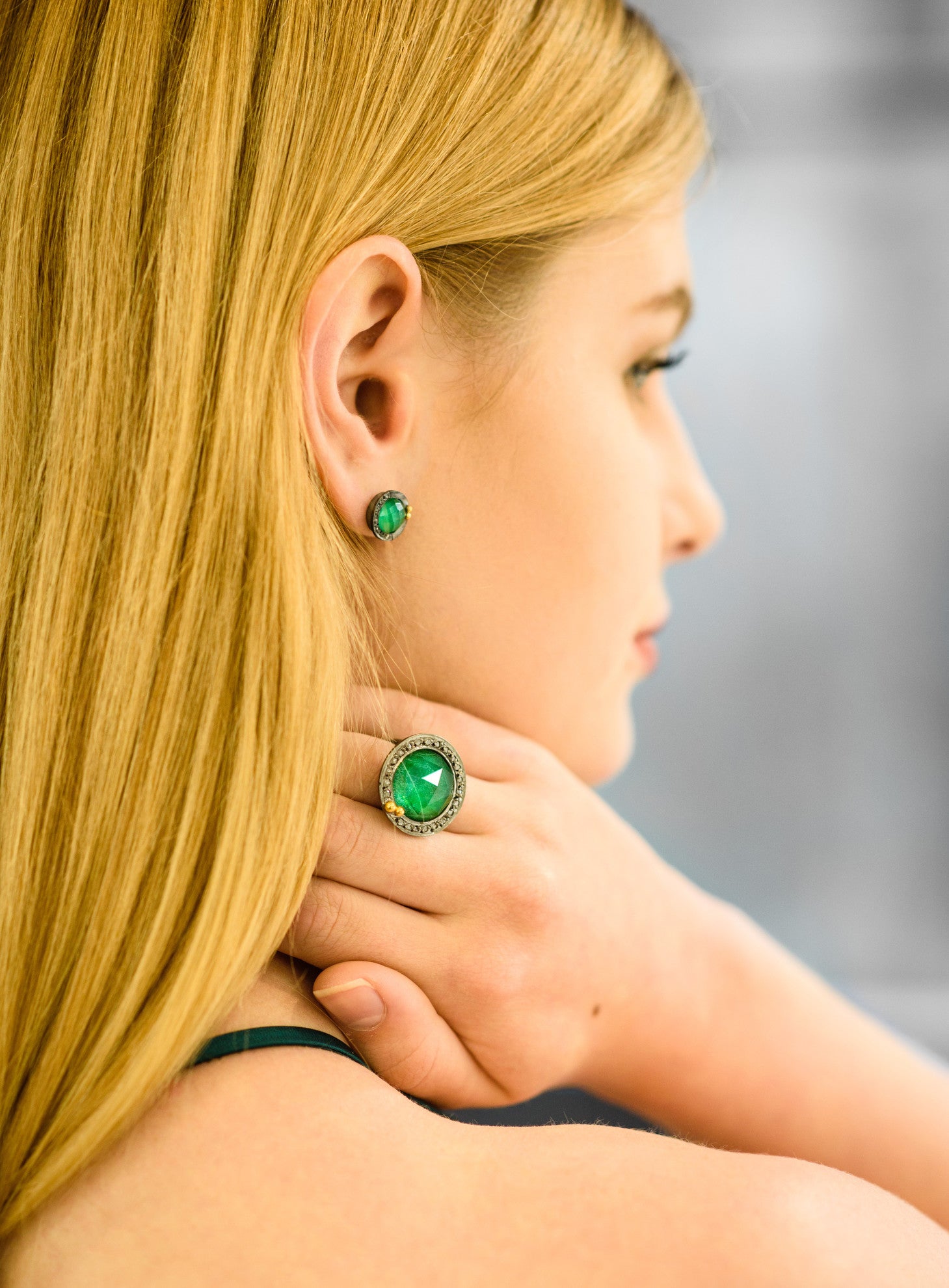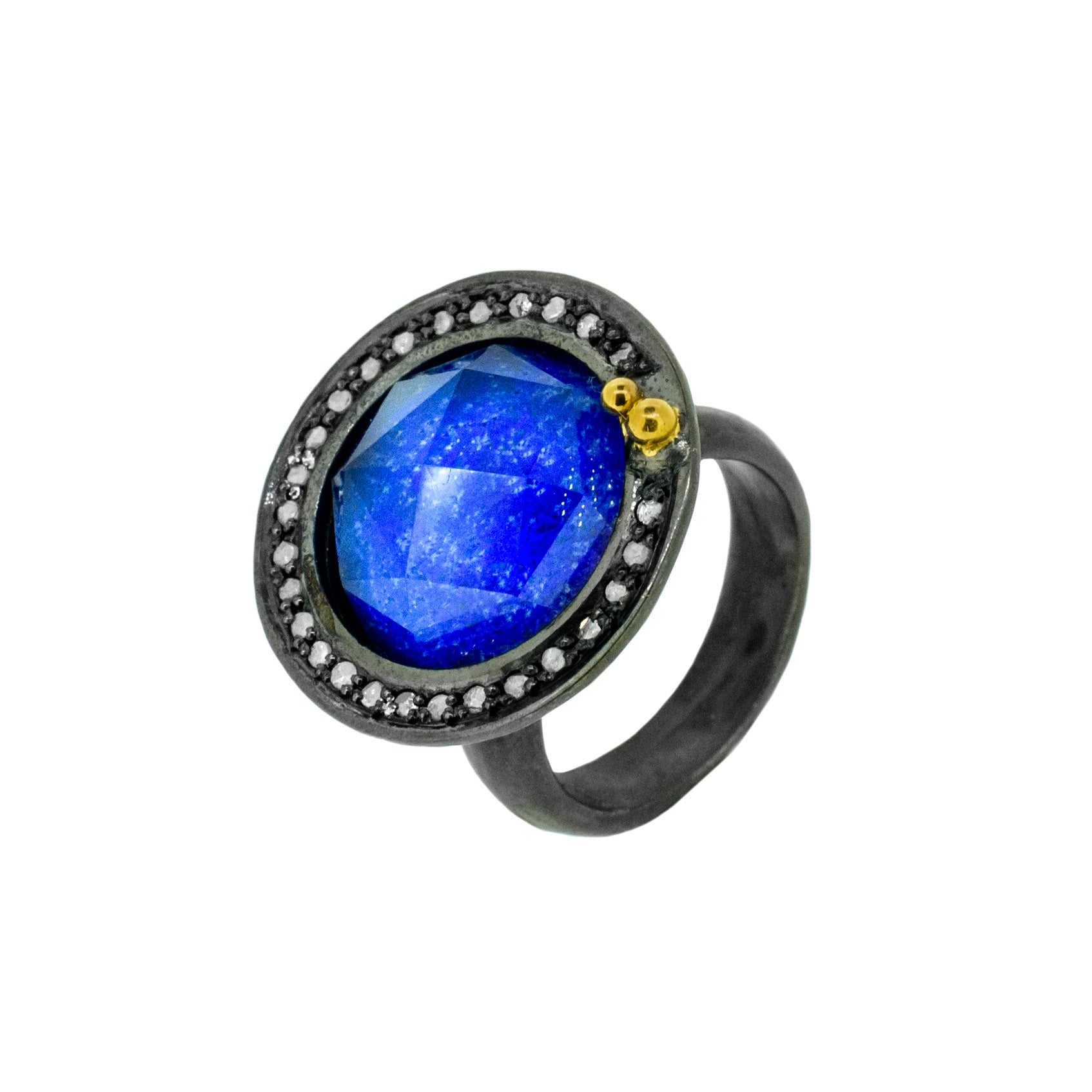 Lapis ring with oxidised silver and rose cut quartz by Niki Boli