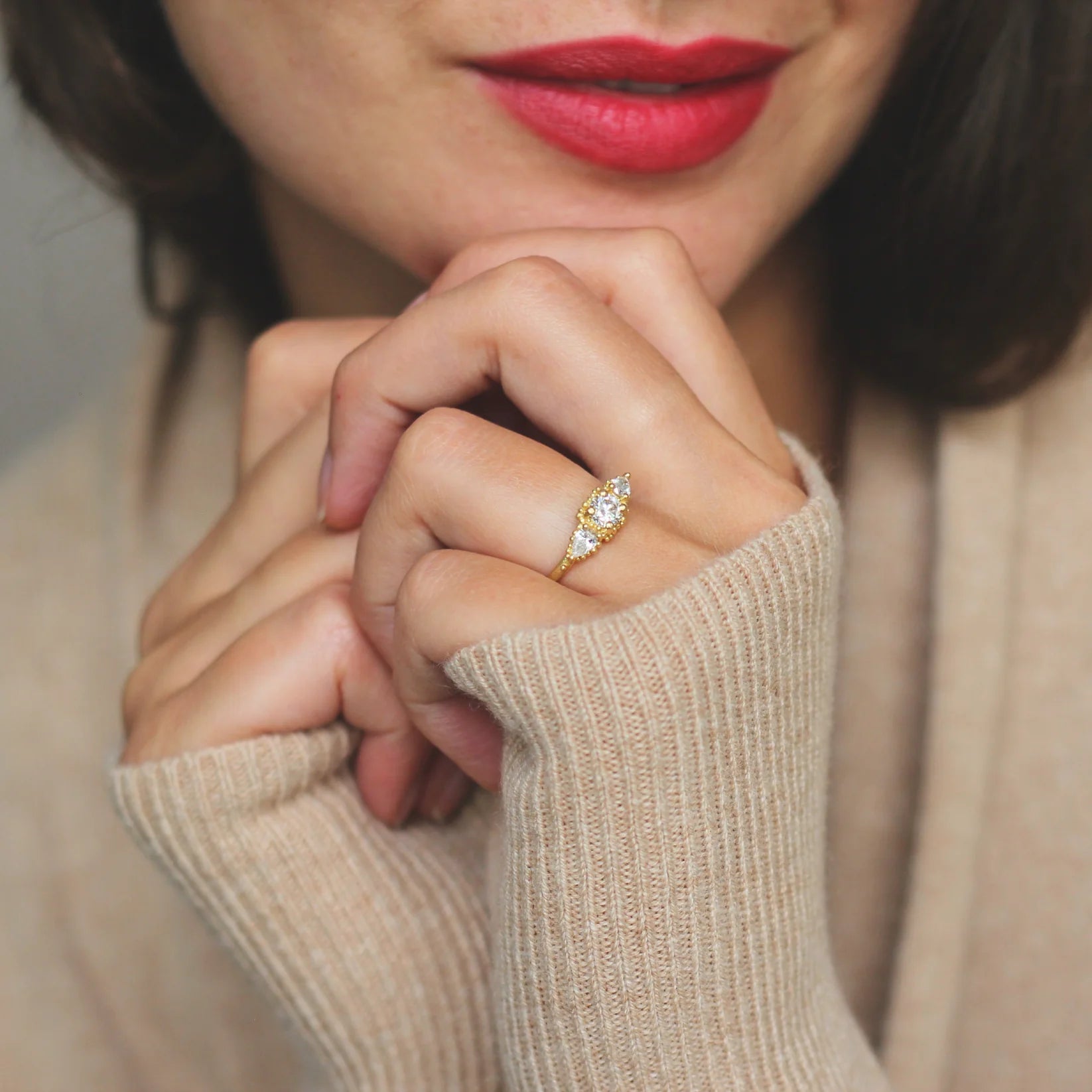 Round and raindrop diamond cluster ring by Hannah Bedford