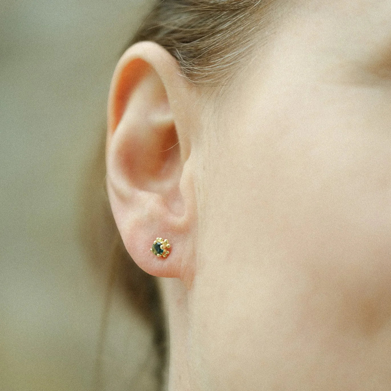 Teal sapphire cluster stud earrings by Hannah Bedford
